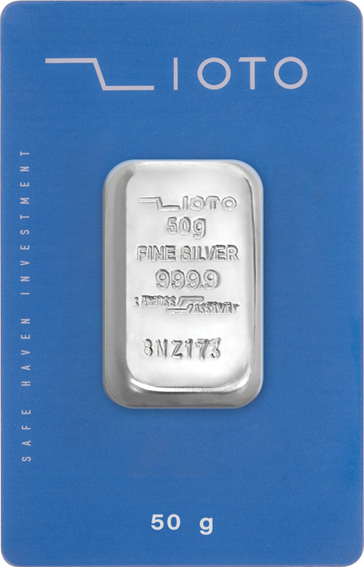 شمش نقره خالص ۵۰ گرمی زیوتو